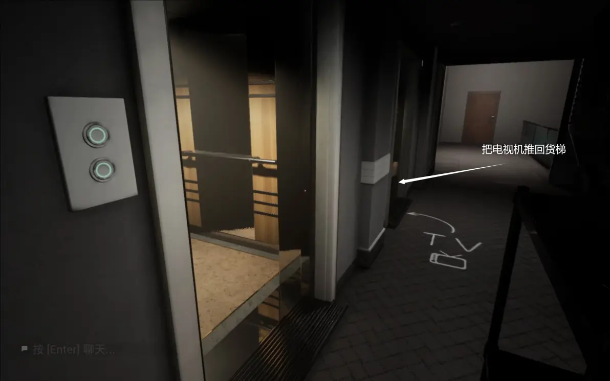 我们这时候不要再去找其他的电视机,要先下楼把电视机归位,因为一次只会刷新一次电视机,而且电梯是要等所有人在里面才能发动的