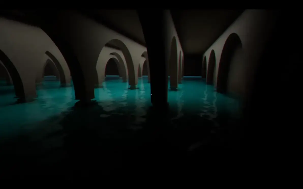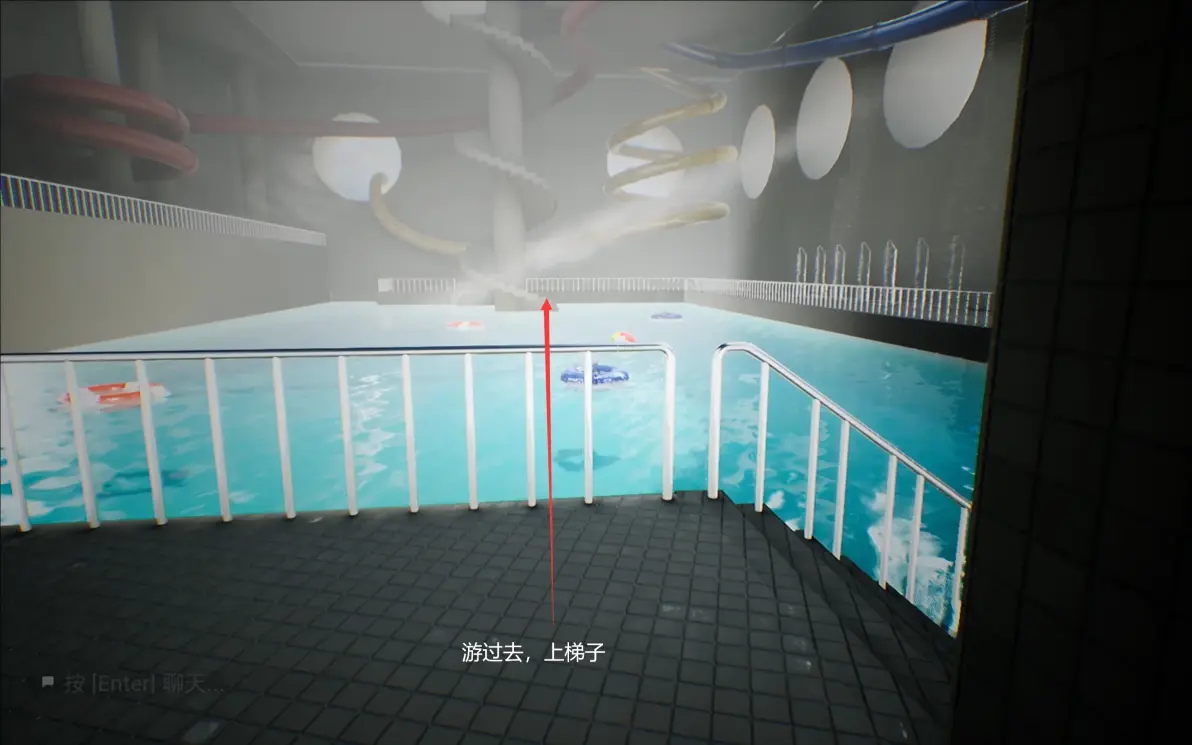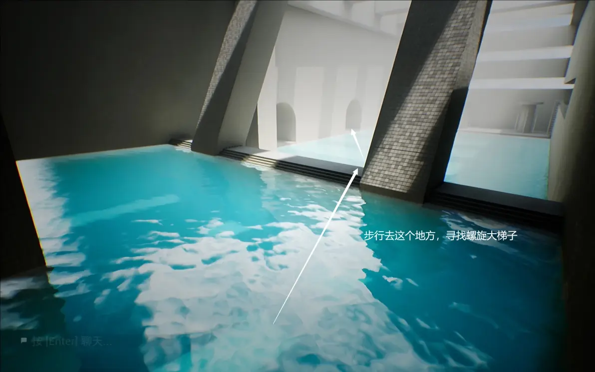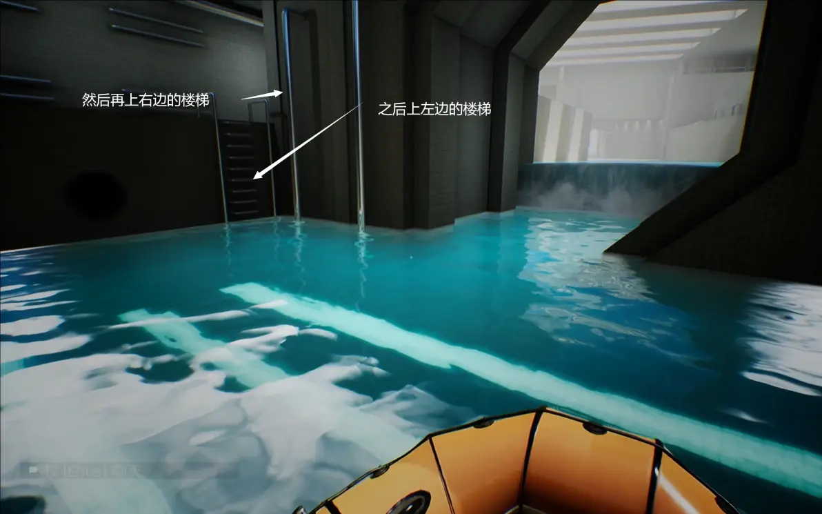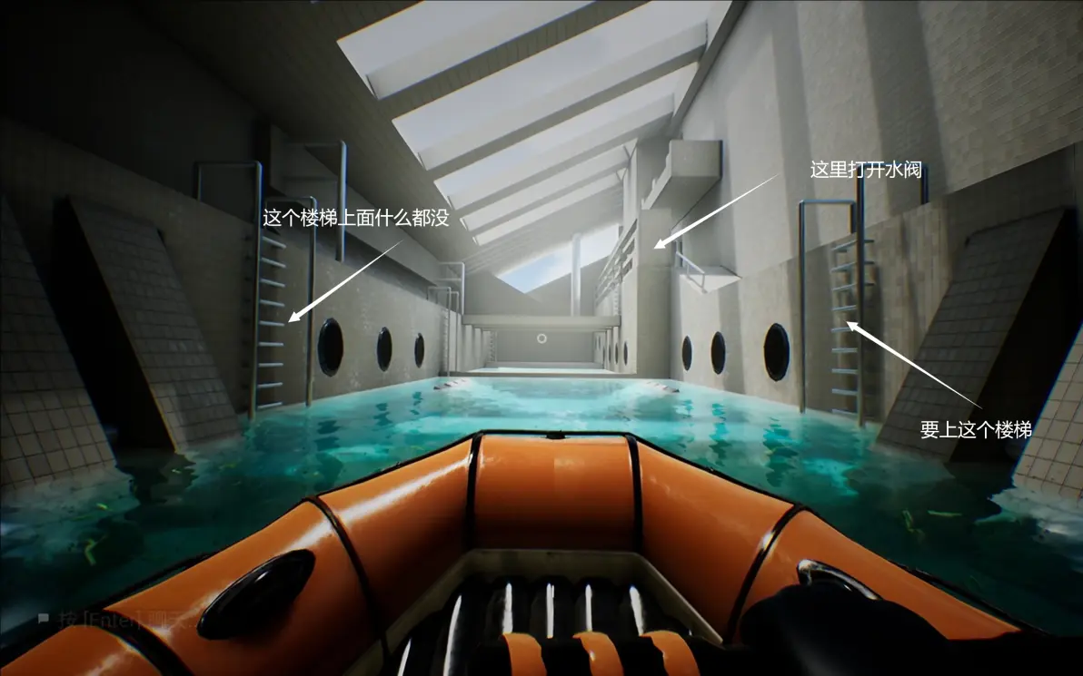 上右边的楼梯,打开如图所标的水阀