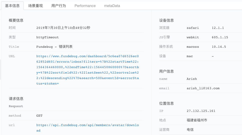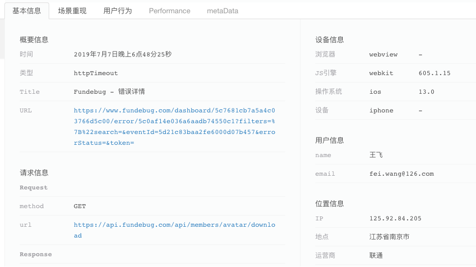 Fundebug提供专业的异常监控服务,当线上应用出现 BUG 的时候,我们可以第一时间报警,帮助开发者及时发现 BUG,提高 Debug 效率。在网页端,我们通过原创的录屏技术,可以 100%还原 BUG 出现之前用户的操作流程,帮助开发者快速复现出错场景。完整演示视频如下:https://static.fundebug.cn/product.mp4