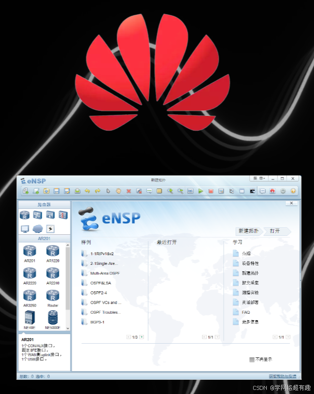 考华为认证,就用它自家开发的eNSP,图形化界面友好,绝大多数功能都能模拟。虽然有新版但是需要账号权限,而且内存占用大,学华为认证或者模拟华为网络环境,用这款老版的完全没问题。
