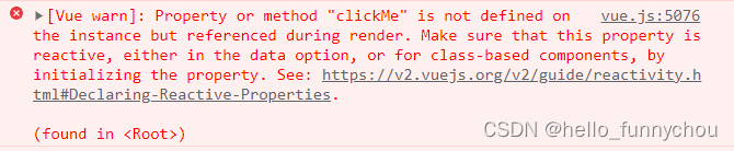 属性或方法clickMe并没有在vue中定义,所以无法在页面中使用。