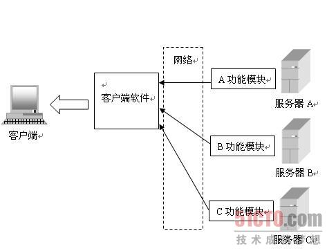 件中。这个组件运行在一个独立的服务器上,客户端软件通过网络调用组件提供的服务以实