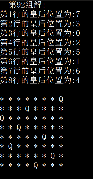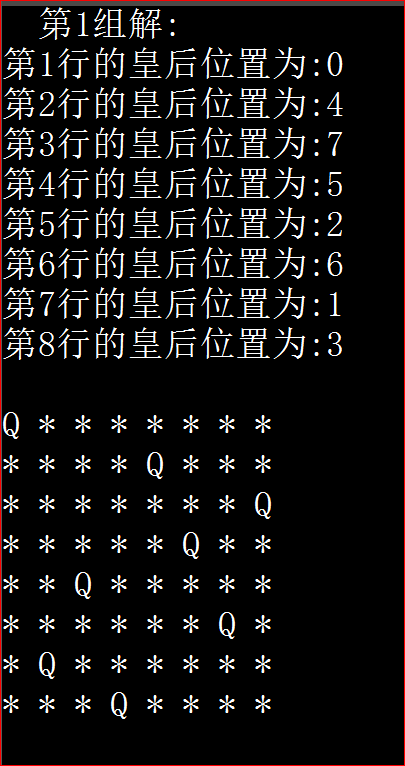 printf("第%d行的皇后位置为:%d\n",i+1,Q[i]);