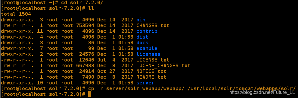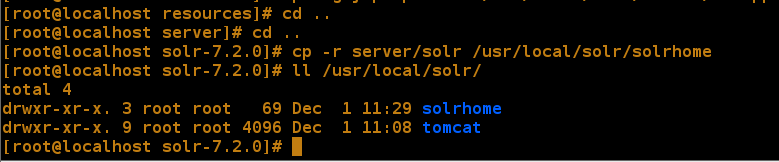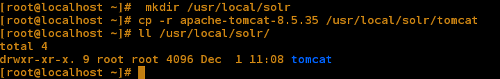 二、上传并解压Tomcat,然后创建solr目录,将tomcat复制重命名到/usr/local/solr/tomcat
