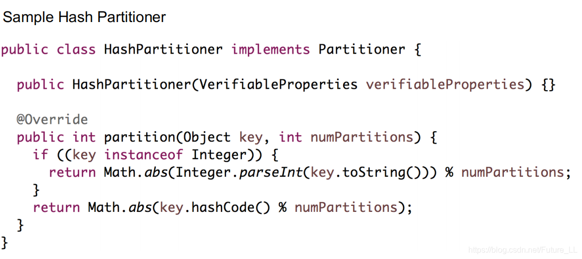 - 对于指定消息的key,返回这条消息应该被发送到那个Partition
