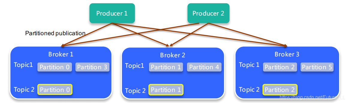 - Producer就是通过Partition去判断,应该将那条消息发送给那个Broker