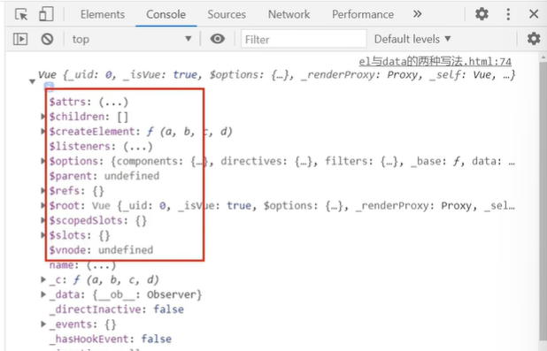 在控制台查看此时vue实例中的data,说明实例中的数据被修改了