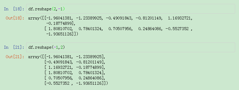 reshape(行,列)可以根据指定的数值将数据转换为特定的行数和列数,这个好理解,就是转换成矩阵。