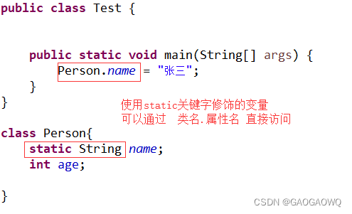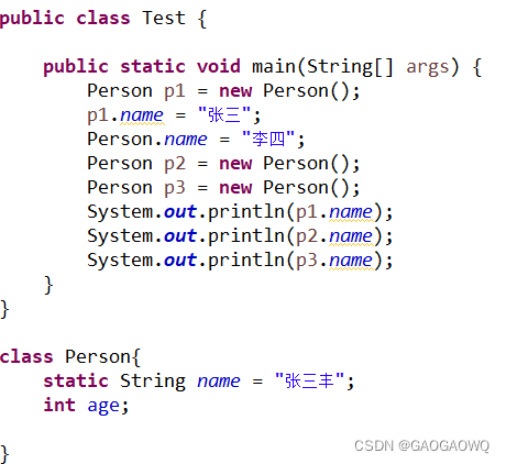 注意:如果一个类的成员变量被static修饰了,那么所有该类的对象都共享这个变量。无论这个类实例化多少对象,它的静态变量只有一份拷贝。 如: