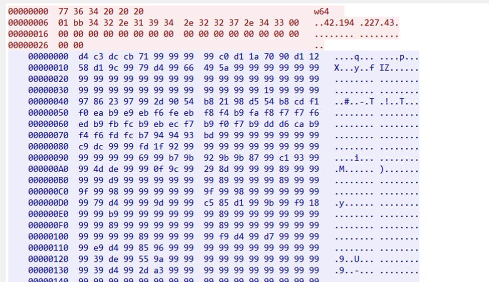 图 3 远控阶段加密通信流量数据结构截图