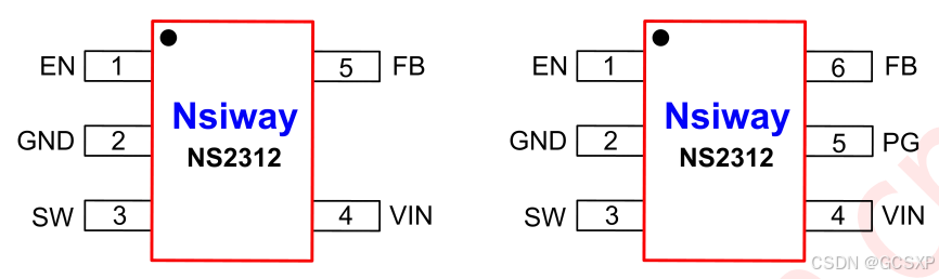 ● NS2312可以提供SOT23-5L和SOT23-6L的标准封装形式。