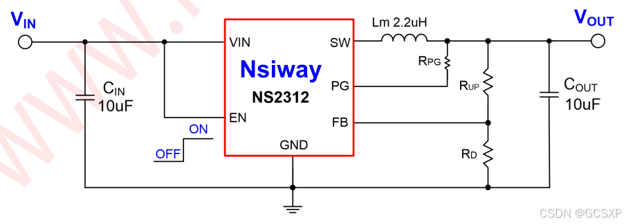 ● NS2312外置有FB引脚可以配置输出电压的参数。客户根据内部0.6V基准电压,设置FB引脚的电阻分压网络参数就可以确认输出电压VOUT。