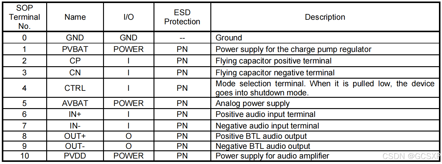 5.2W(VBAT=4.2V,RL=4Ω,THD+N=10%)