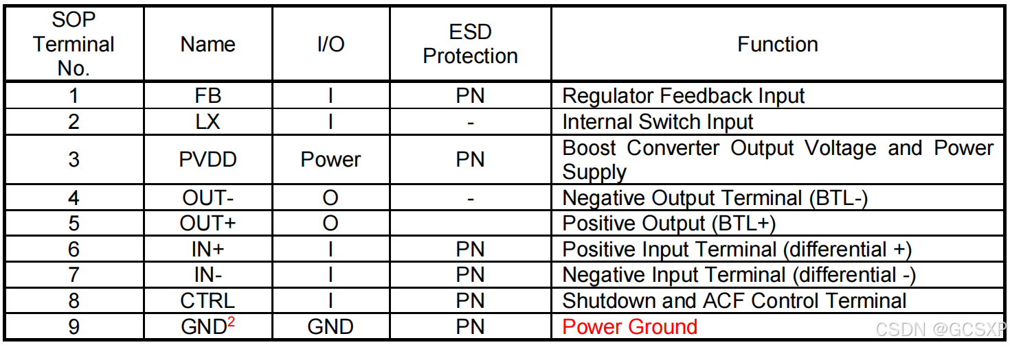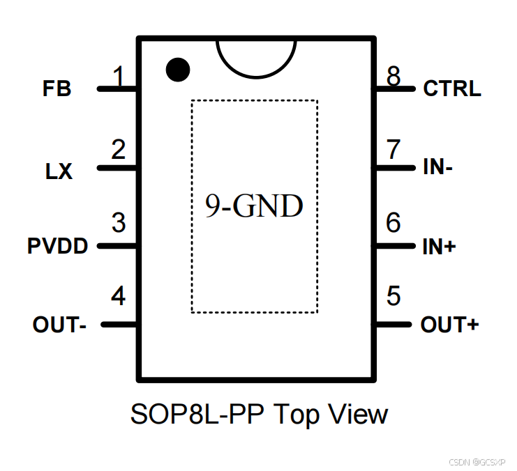 9.0W(VBAT=4.2V, PVDD = 7.5V,RL=3Ω,THD+N=10%)
