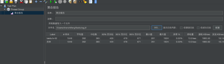 chenshifengdeMacBook-Pro:~ chenshifeng$ jmeter -n -t baidu.jmx -l baidulog.jtl