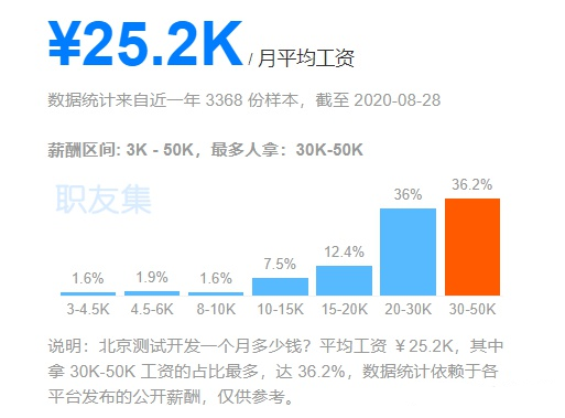 一方面测试开发市场稀缺,一方面确实能为公司创造价值,导致了测试开发薪资工资非常高,可见下方测试开发薪资: