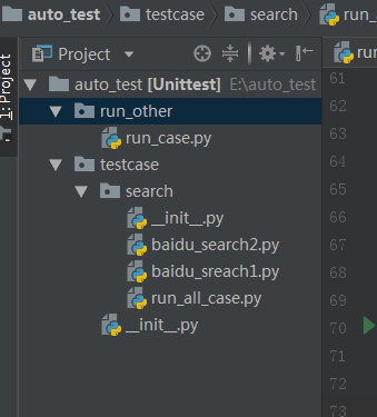 手动添加采集指定的测试用例集用法:先在PyCharm中新建如下项目层级: