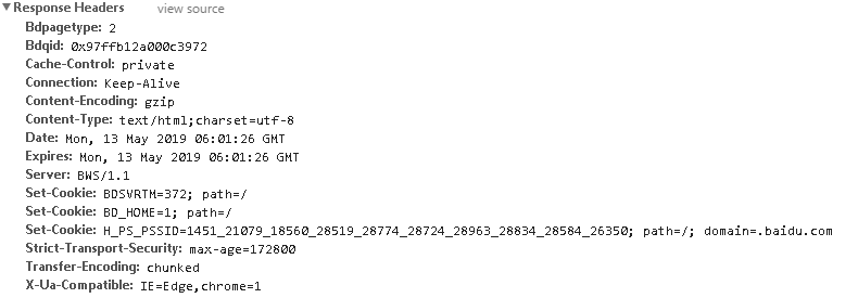 在往下,就是Response Headers和Request Headers,分别是响应头和请求头。包含了响应和请求的部分相关信息和内容,下面具体看看这个请求和对应的响应都哪些内容。