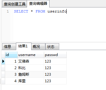 因为方便测试,我们首先在mysql数据库创建测试表:userinfo,表信息如下: