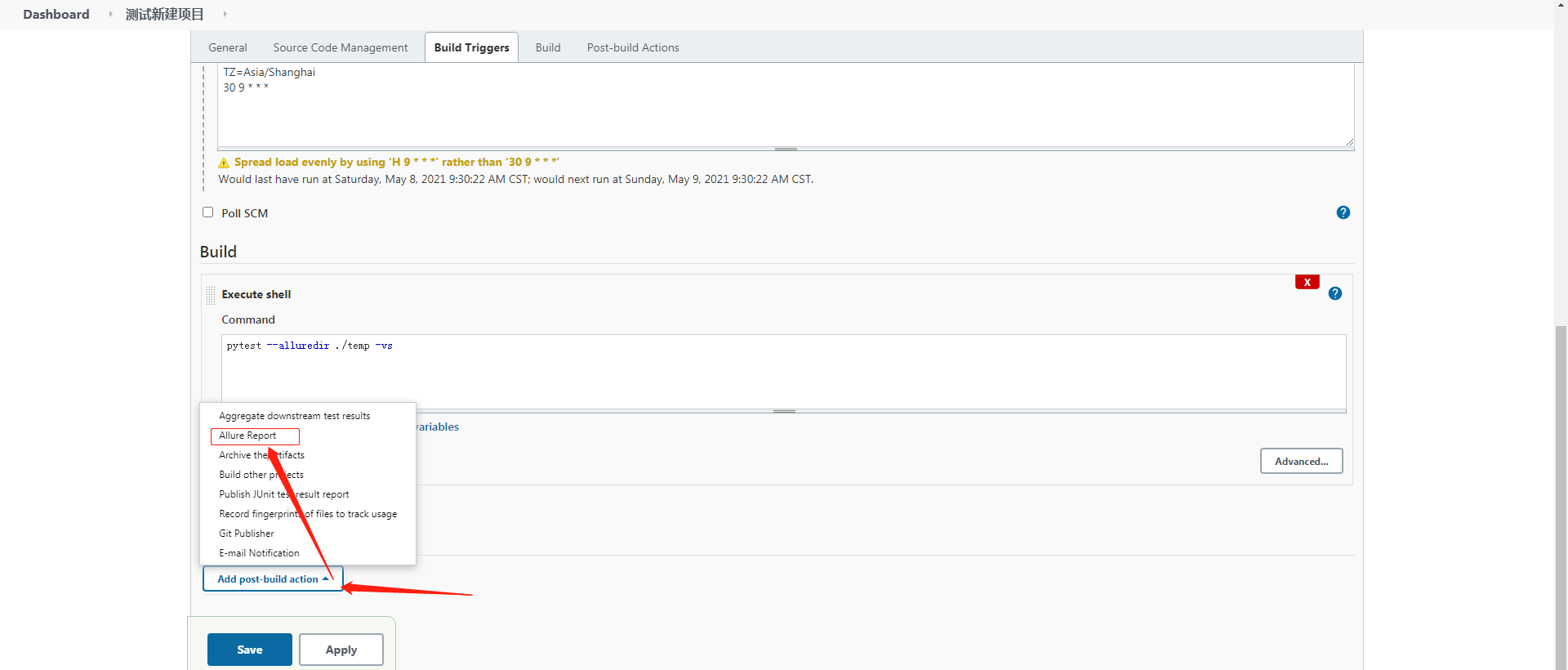 三、构建配置allure插件
