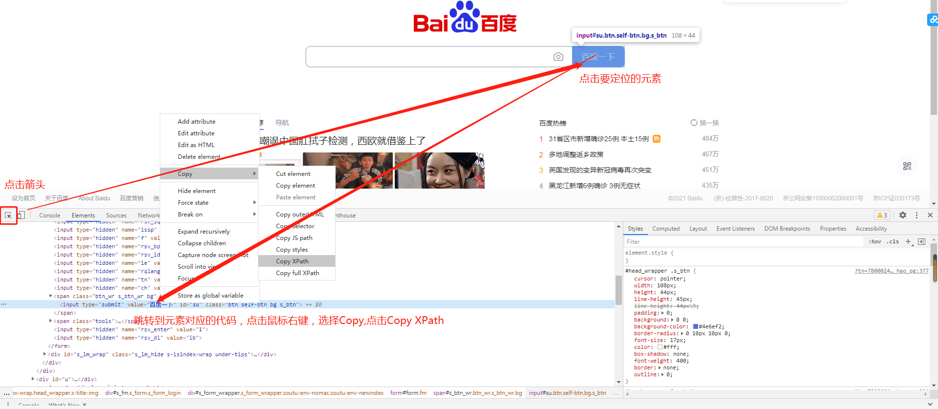 使用chrome自带的xpath定位元素的方法如下: