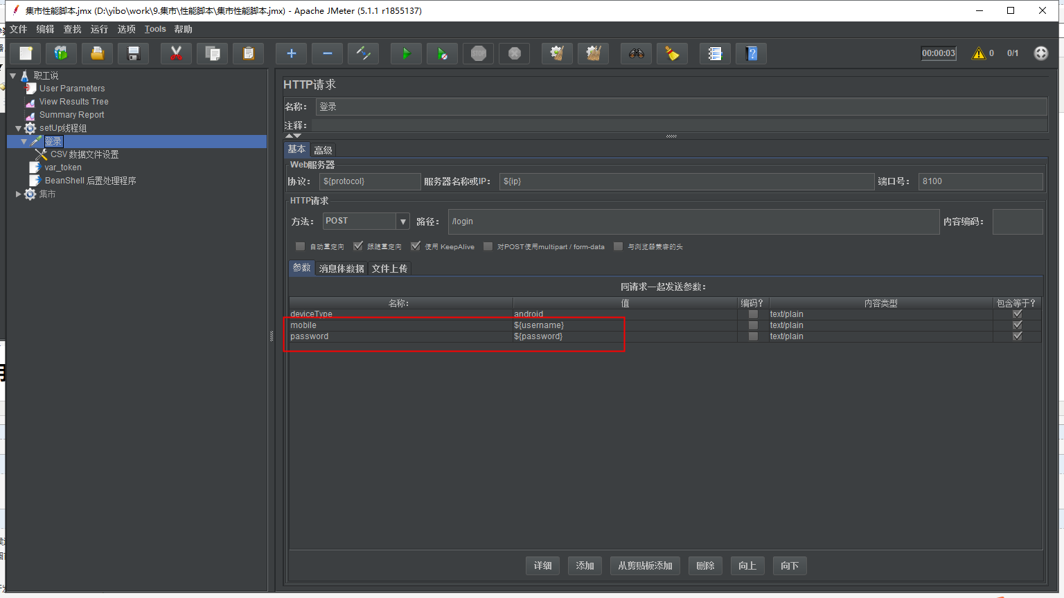 所以在配置数据时,我们需要把参数化的数据进行分行。文件格式可以是csv也可以是txt。下面以登陆功能演示csv参数化过程。