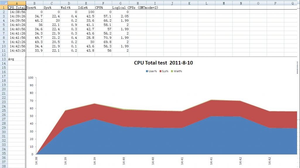 然后点击“Analyse nmon data”导入我们从linux下导出的“.nmon”文件,点击确定,就会自动生成图形化的excel,如下图: