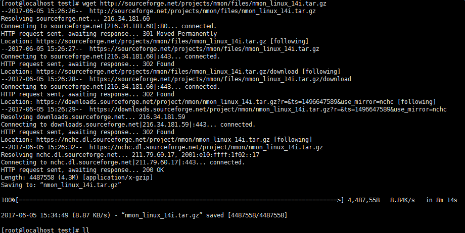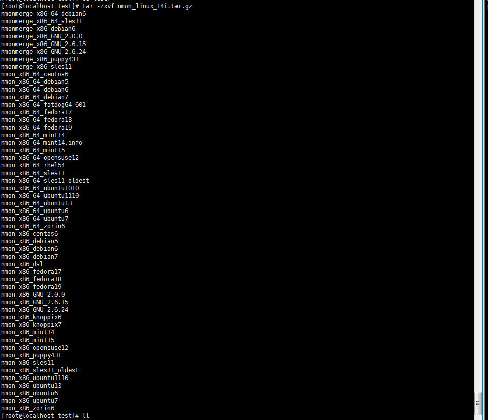 执行 ll 命令能在当前目录看到 nmon_linux_14i.tar.gz 文件