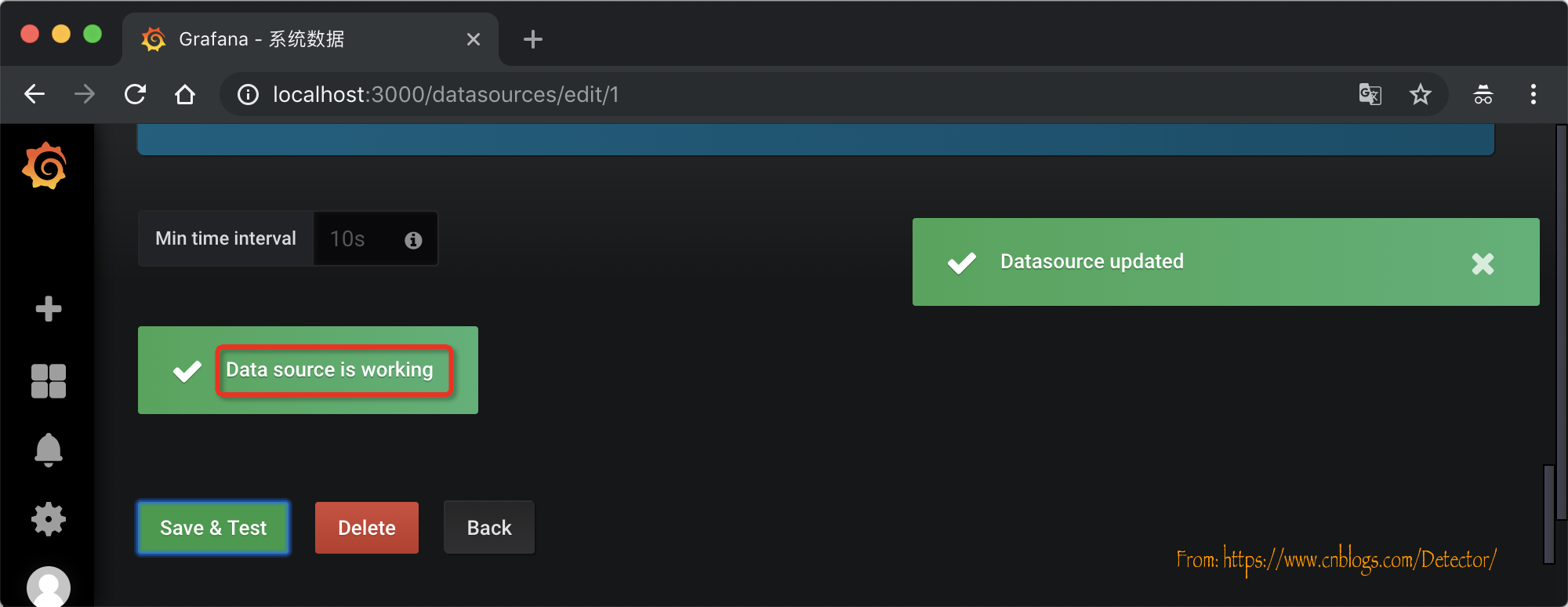 选择数据库类型为influxdb,host为http://influxsrv:8086,填写cadvisor的账户密码: