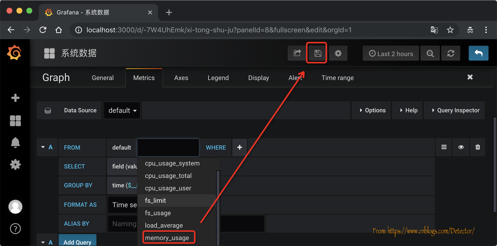在展示数据配置界面选择一个数据源,比如内存,点击保存,即可完成该数据的动态展示: