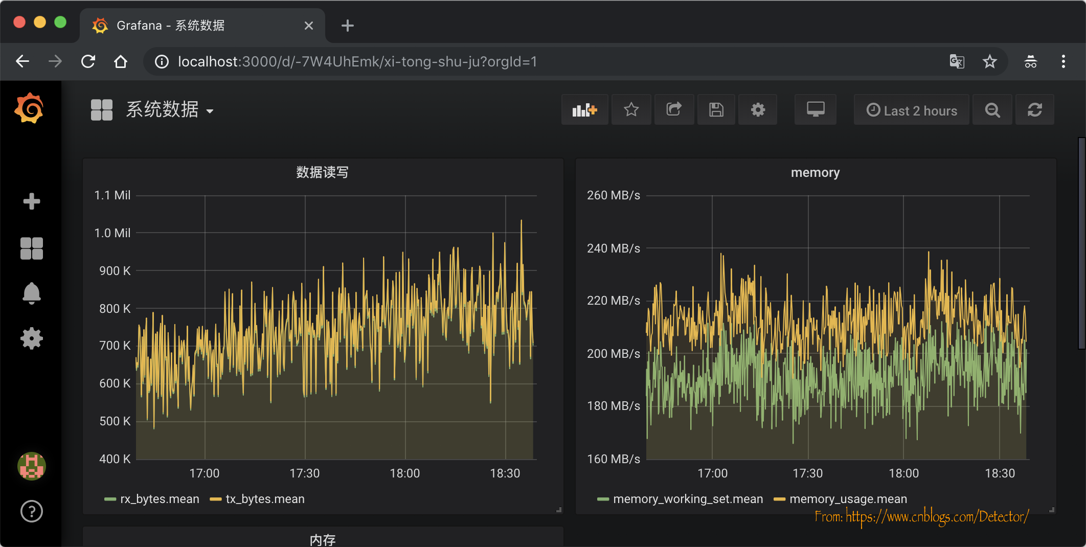 一款可视化度量分析和可视化套件,常用于可视化基础设施和应用程序分析,与Kibana类似,UI更加灵活,且插件丰富。
