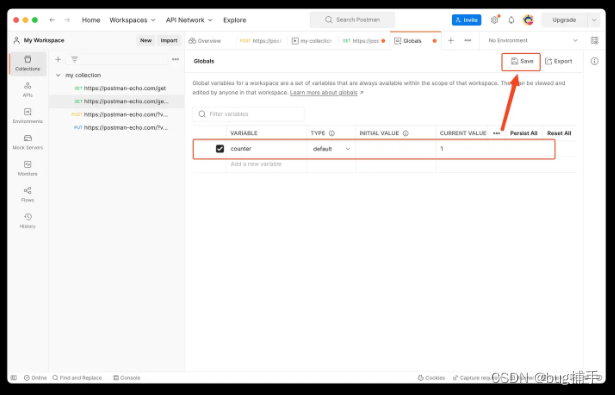 在使用 Postman Runner 运行测试脚本时,我们需要设置一个全局参数 counter 。接下来,我们将会通过脚本自动将这个参数进行自增。