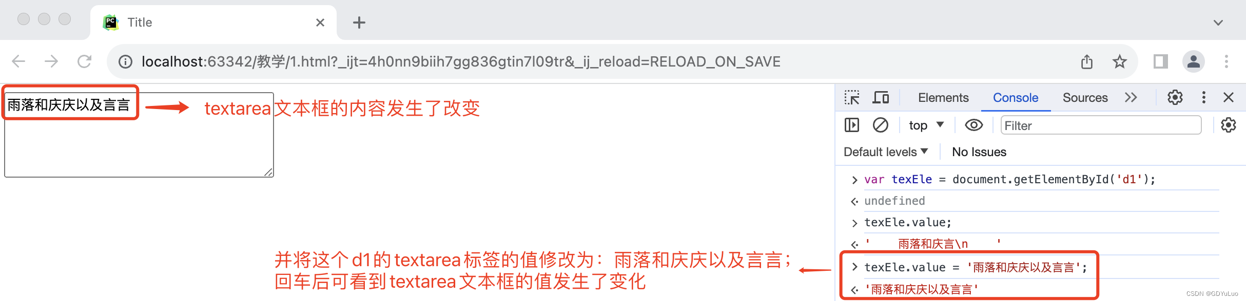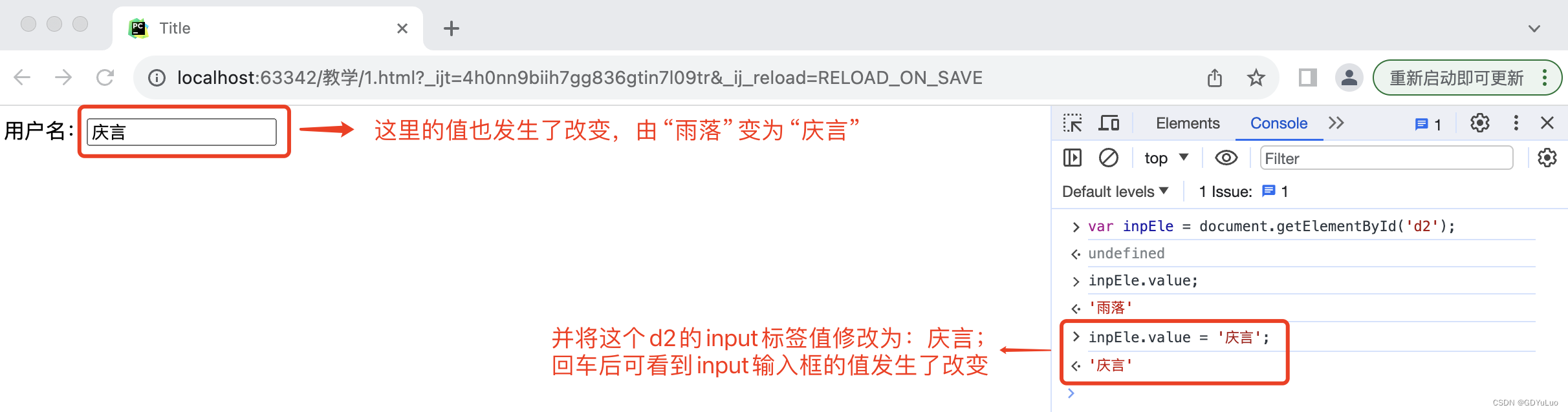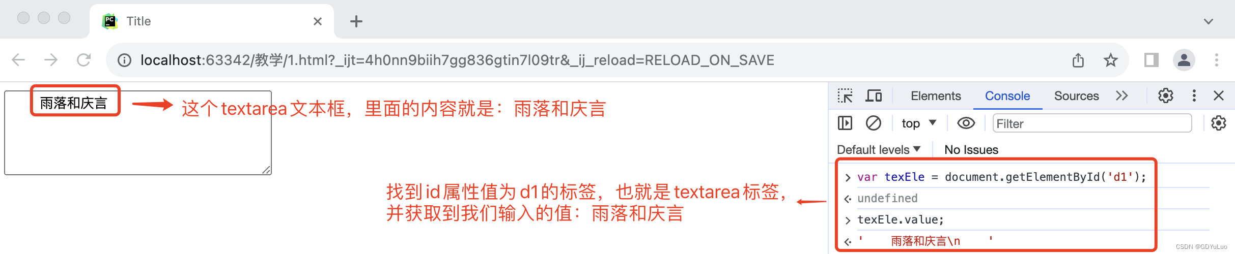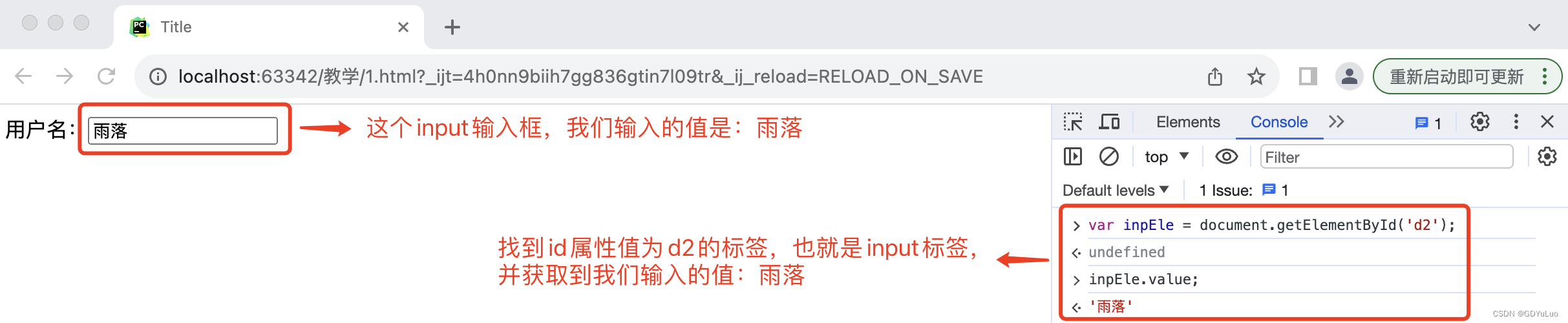 我们在HTML文件中写入一段代码,包含一个id属性为d1的div标签,在浏览器中利用如上的方法,找到这个div标签,并对其中的内容进行修改