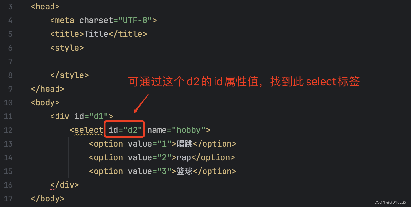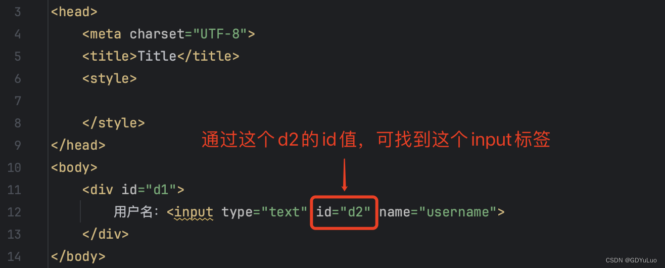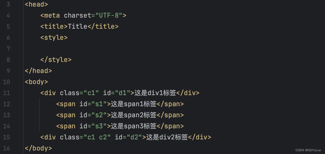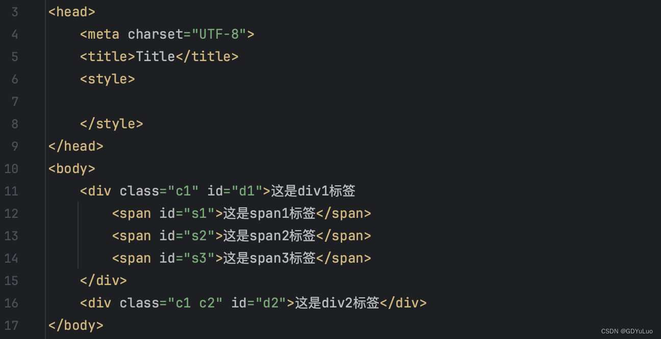 同样的,我们还是在HTML文件中写入这样几个标签,先找到其中id属性值为d1的div1标签,来间接查找其他的标签