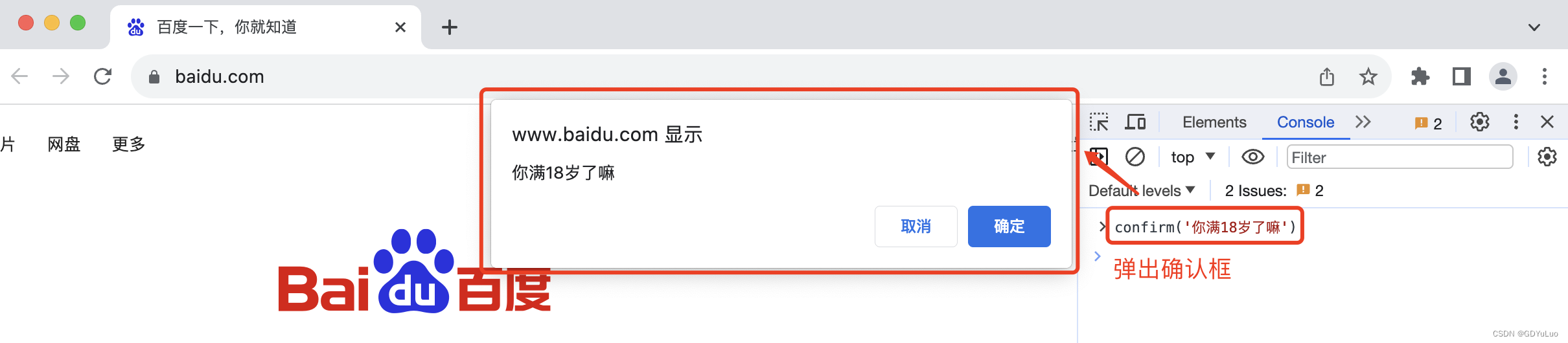 确认框用于使用户可以验证或者接受某些信息。当确认框出现后,用户需要点击确定或者取消按钮才能继续进行操作。如果用户点击确认,那么返回值为 true。如果用户点击取消,那么返回值为 false。主要用途就是我们可以根据返回的true和false来判断一下,然后根据这个值来使用location去跳转对应的网站