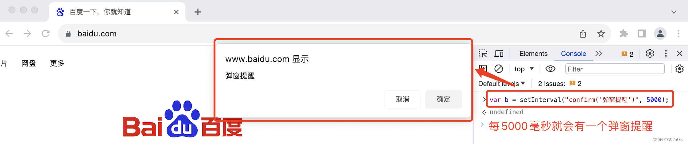 2、setInterval():每隔一段时间做一些事情,其设置语法如下setInterval()方法可按照指定的周期来调用函数或计算表达式。setInterval()方法会不停地调用函数,直到clearInterval()被调用或窗口被关闭。由setInterval()返回的ID值可用作clearInterval()方法的参数