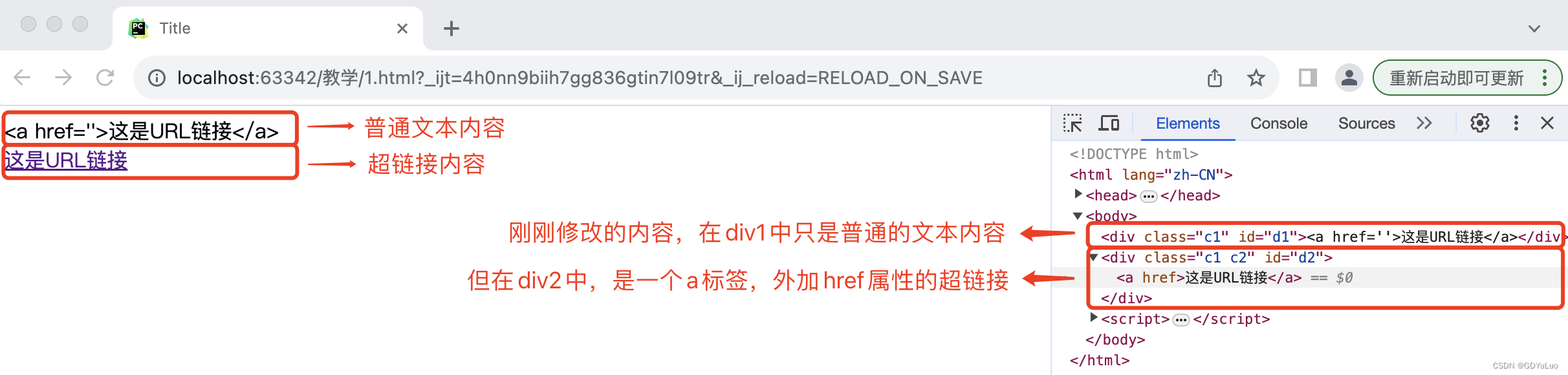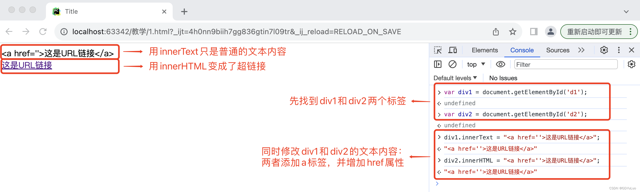 如上可知innerText能对标签的内容进行改变,但innerHTML能对标签的超链接进行识别