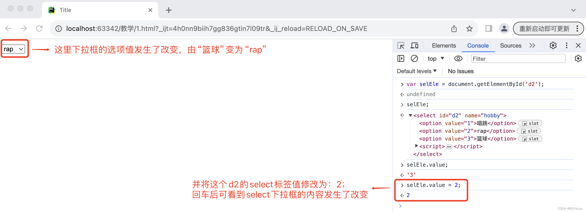 1、方式一:将JS代码写到HTML文件标签里(不便于后期维护,不常用)