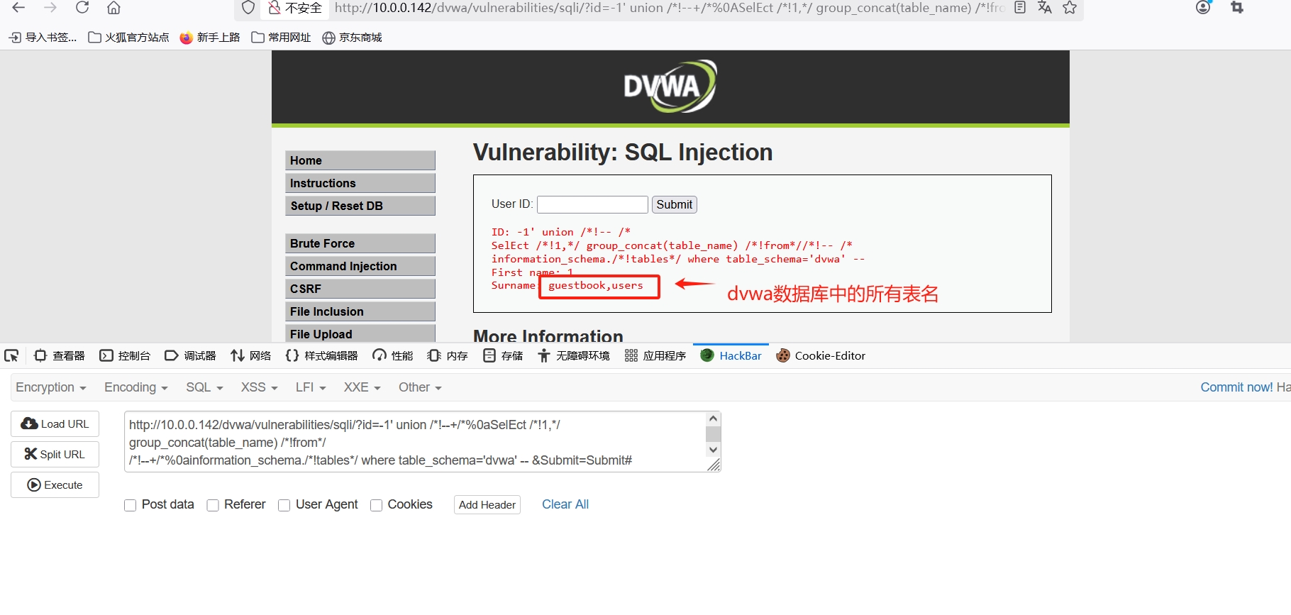 2、有WAF的情况下,手工注入出DVWA数据库中的user和password