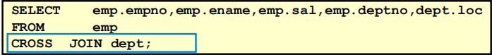 SELECT * FROM emp,dept WHERE emp.deptno = dept,deptno;