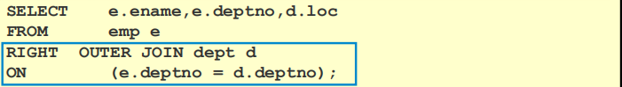 右外连接 RIGHT OUTER JOIN ON或 RIGHT JOIN ON