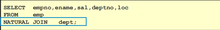 - NATURAL JOIN子句和USING子句是相互排斥的,不能同时使用。