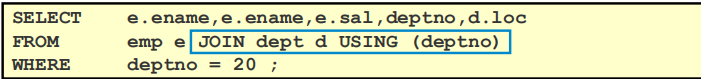 - USING子句中用到的列不能使用表名和别名作为前缀。