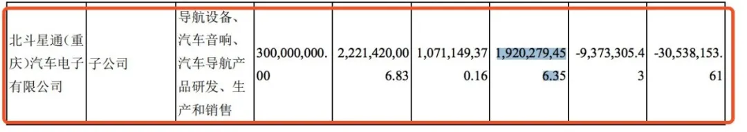 财报显示,北斗星通的智能网联汽车相关业务主要由子公司——北斗星通(重庆)汽车电子有限公司(以下简称“重庆北斗”)负责。
