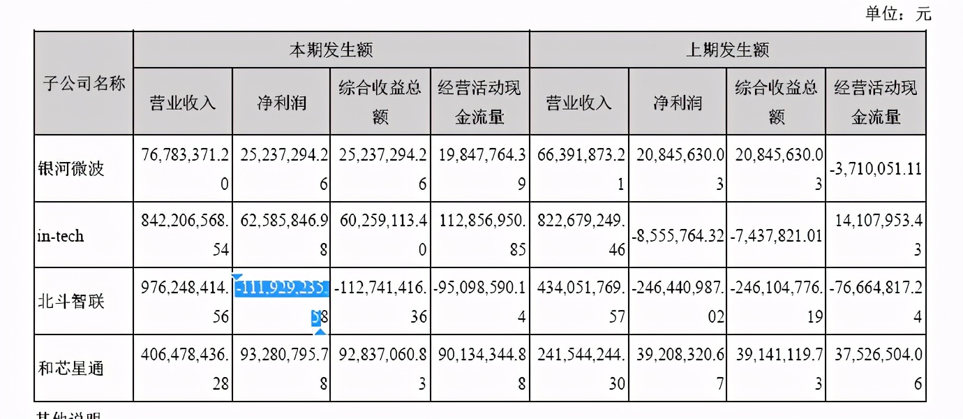 北斗星通在2019年年报表示,之所以产生巨额亏损,主要是因为收购in-tech公司、华信天线等公司计提了7.08亿元的资产减值损失影响,其中5.5亿元是商誉减值。
