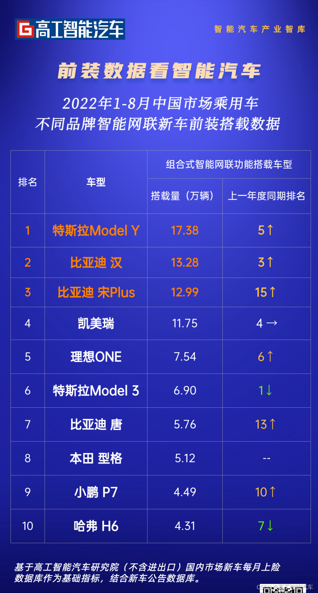 以特斯拉为例,Model Y替代Model 3成为今年1-8月中国市场最畅销的组合式智能网联车型,但Model 3的竞争力却直线下滑,从去年同期的第1位下滑至第6位。