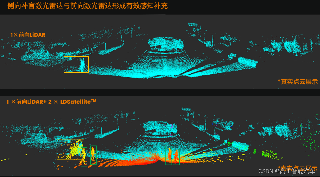 ▲ LDSatellite补盲激光雷达与前向主雷达组合感知