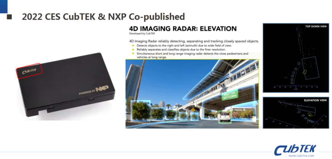 目前,为升科(CubTEK)已经基于NXP的多颗级联TEF82xx雷达射频芯片及结合S32R45雷达处理器芯片,推出了4D成像雷达方案。据悉,该4D成像雷达方案最大的亮点在于率先提供了短距、中距、长距三合一的并发多模雷达感测,可以实现360度环绕感知以及汽车周围宽广视场的同时感测,从而满足L2+级至L5级的自动驾驶需求。