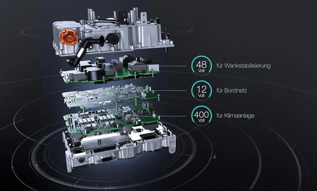 据了解,该三合一多功能转换器可将800V电压转换为48V、12V和400V,其中48V电压提供车辆的侧倾稳定性并通过能量回收双向工作,12V电压用于车载通用型电器供电,400V用于空调压缩机。