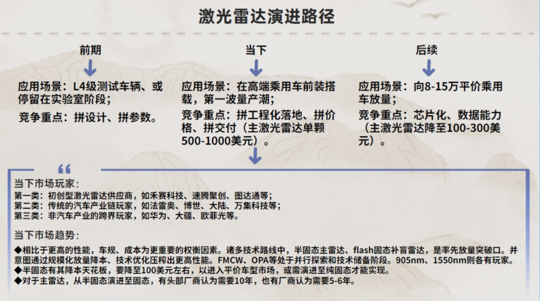 其三,未来,激光雷达产业的演进路径,可能会是怎么样的?何时能渗透到8-15万元平价车型市场?